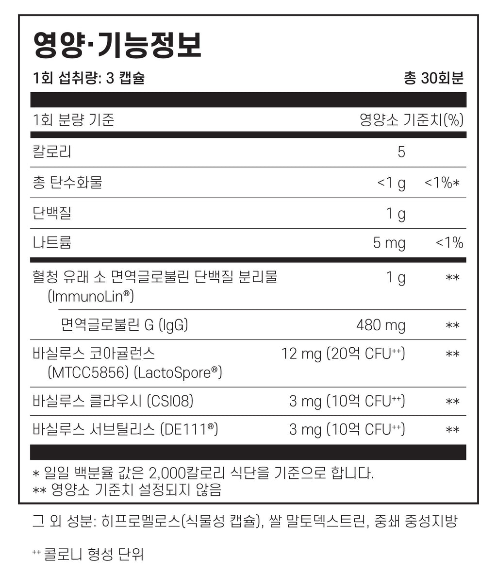 - 점막 면역성을 강화하기 위해 농축된 면역글로불린을 제공