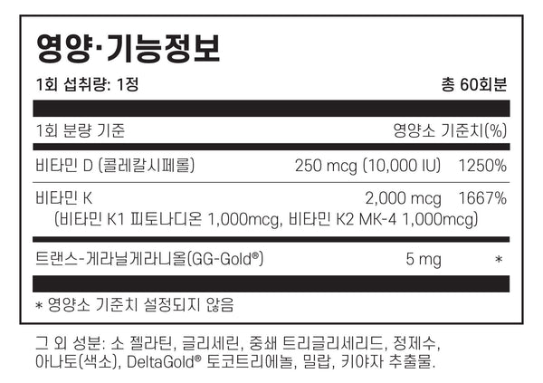 - 파이토나디온으로 비타민 K1 1,000mcg, MK-4로 비타민 K2 50mcg