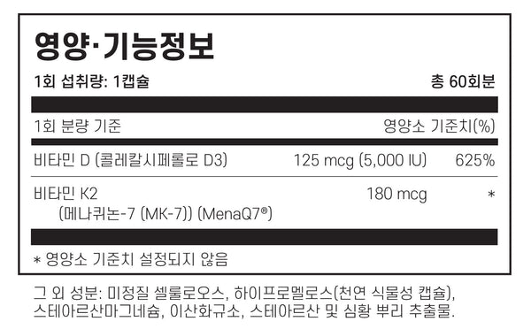 필로소피 K2 + D3 프로는 뼈와 심혈관 건강을 최적으로 지원하기 위해 가장 널리 연구된 비타민 K2 형태인 MK-7인 MenaQ7® PRO 180mcg과 비타민 D3 5,000IU를 제공합니다.