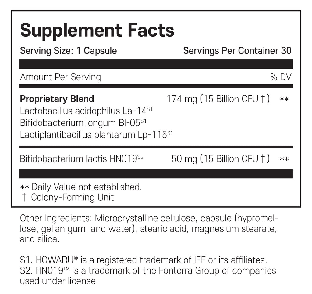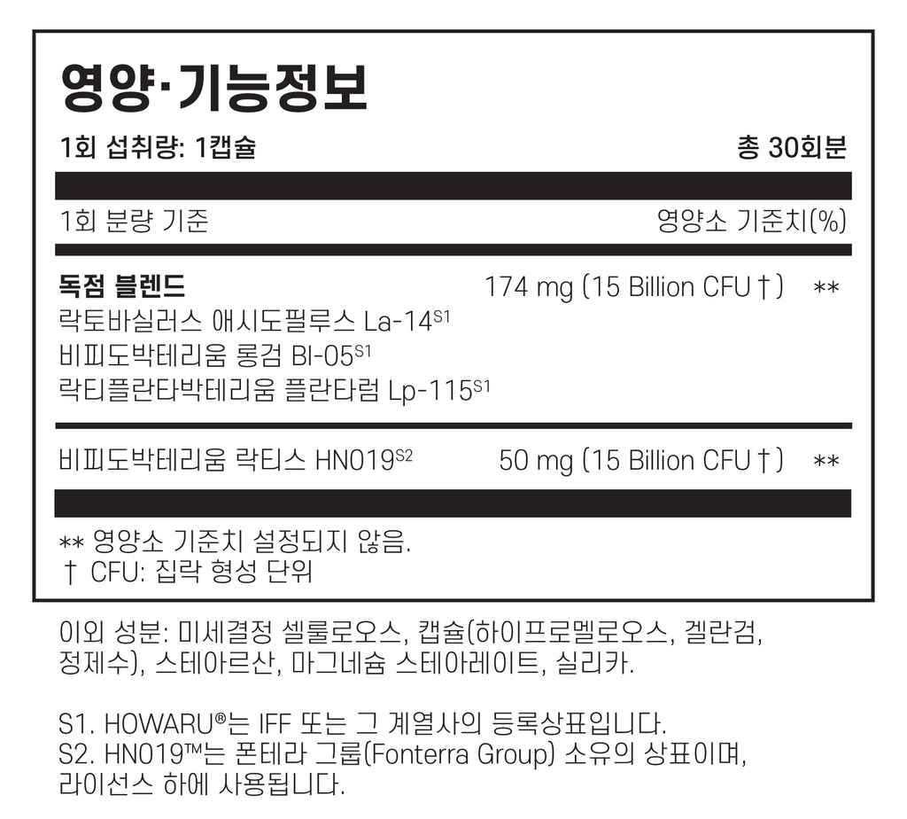 자이모겐 유산균의 첨단 포뮬러는 HN019®를 포함한 4가지 과학적으로 검증된 유익균주를 함유하고 있습니다. HN019®는 장 점막 보호 효과로 잘 알려진 비피도박테리움 락티스 균주입니다. 이 캡슐은 위산을 견디고 유익균이 가장 필요한 장까지 안전하게 도달하도록 설계되었습니다.