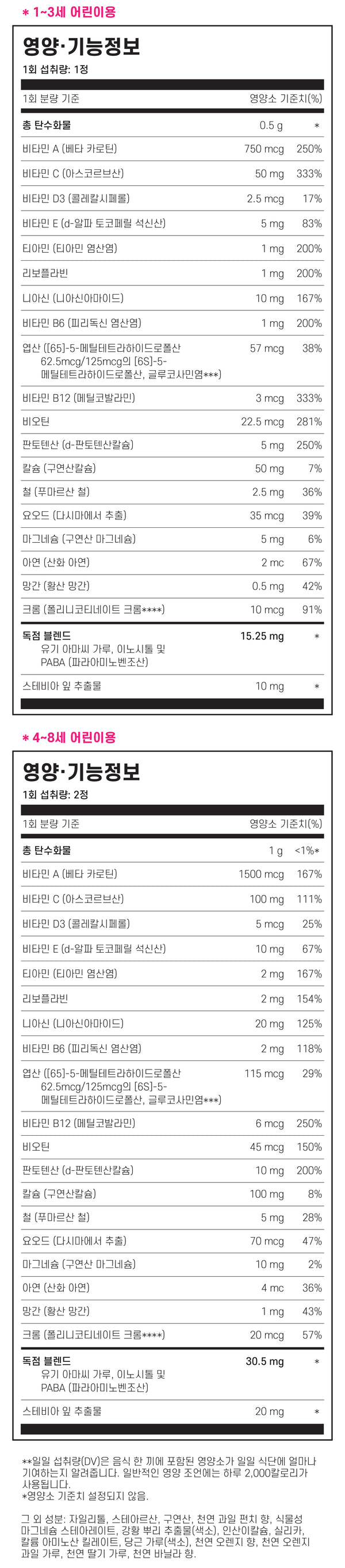 - 어린이에게 필수적인 비타민 및 미네랄 함유