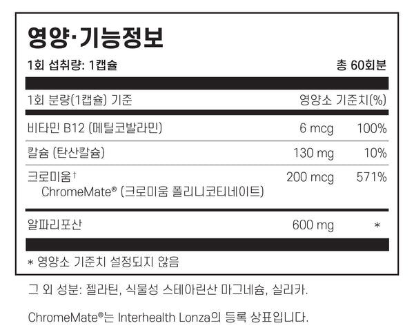 본 제품은 크로미움과 비타민B12를 첨가하여 당대사 효과를 극대화 한 제품입니다.