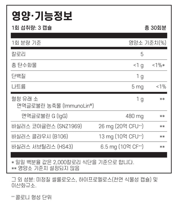 - 점막 면역성을 강화하기 위해 농축된 면역글로불린을 제공
