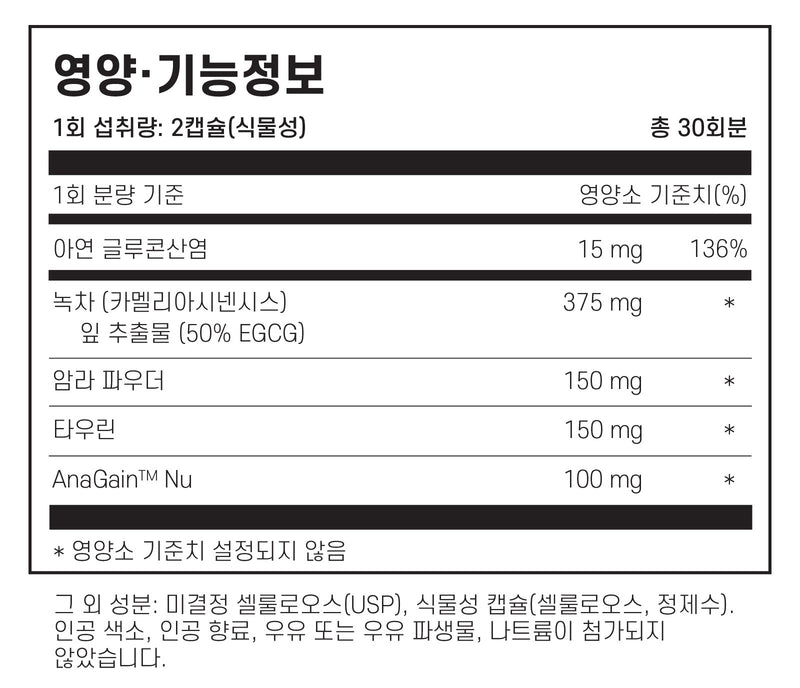 항산화 성분인 암라 파우더와 녹차 폴리페놀(디카페인), 아연 및 타우린의 조합이 추가적으로 더해져 건강한 모발 성장을 촉진하고 탈모를 줄여줍니다.