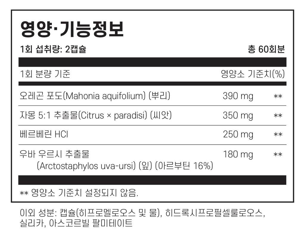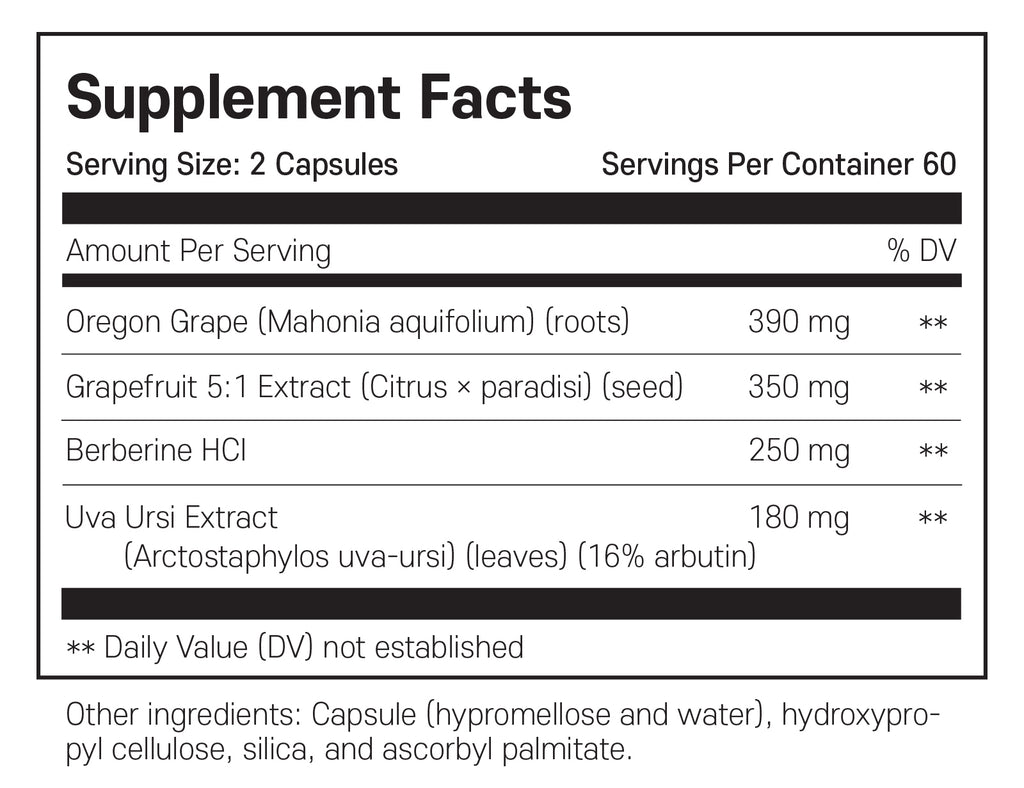 베르베마이신™은 전통 아유르베다와 한방에서 널리 사용되는 식물성 알칼로이드인 베르베린을 함유하고 있으며, 위장관 내 건강한 미생물 활동을 지원하는 데 임상적 효능을 보였습니다. 천연적으로 농축된 베르베린을 함유한 오리건 포도 뿌리, 자몽씨, 우바 우르시 추출물 등의 보완 성분 또한 미생물 활동에 영향을 미칩니다.
