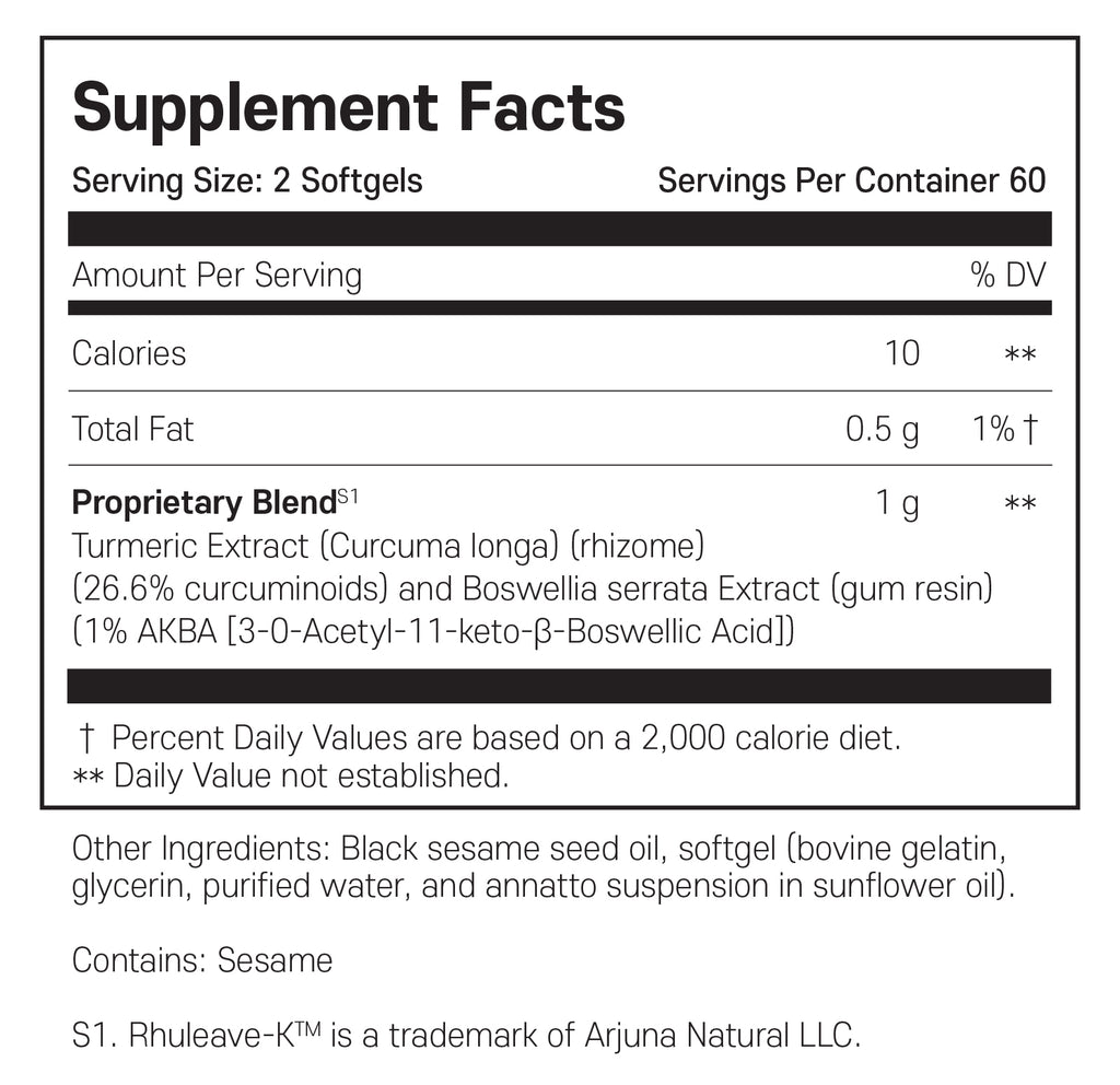 현대 과학과 전통 지혜를 결합한 SynovX® Relief는 빠르게 흡수되어 근육과 관절에 효과적인 편안함을 제공합니다. 강황과 보스웰리아 추출물을 특허 기술을 사용하여 검은깨 오일 베이스에 배합하여 사이클로옥시게나제 및 리폭시게나제 수용체를 신속하게 억제합니다.