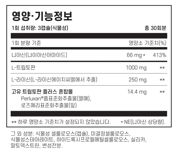 - 건강한 트립토판 활동을 촉진하는 영양소 포함